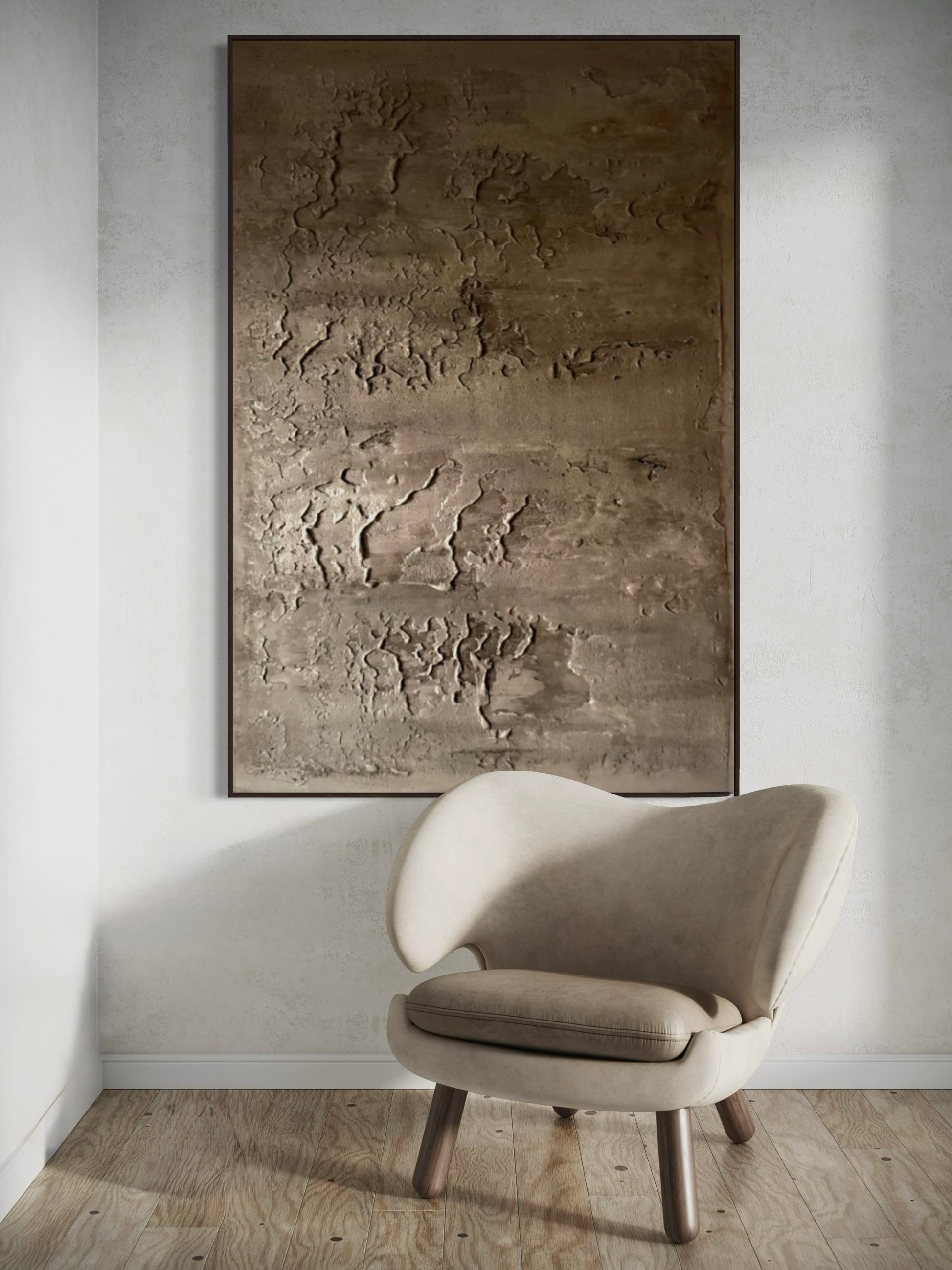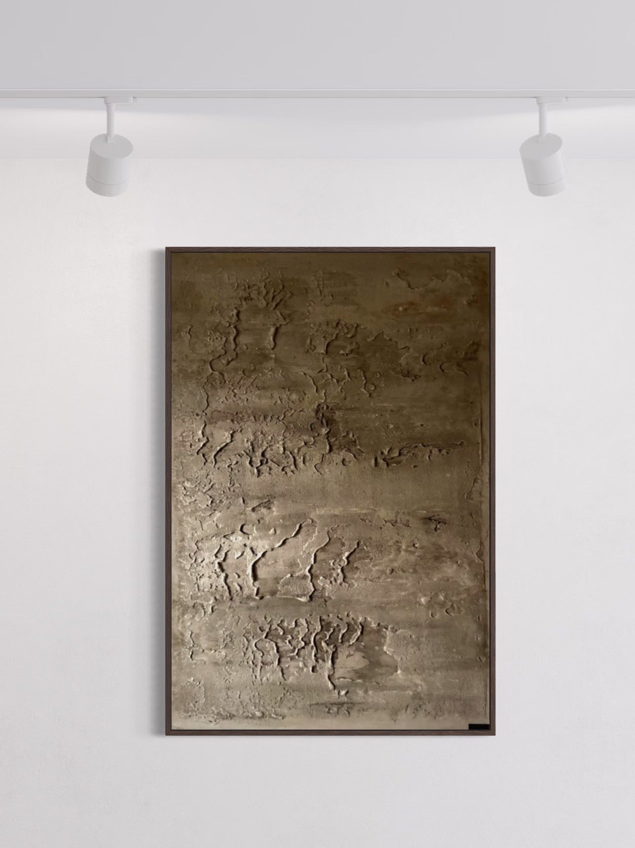 I varje lager av Sediment finns tidens och naturens egen berättelse. Jord, struktur och material möts och bildar en harmonisk balans – som marken under våra fötter, stadig och trygg. Verket är en meditation i form, där varje färgton och varje relief berättar om stillhet, tålamod och den skönhet som växer långsamt.
