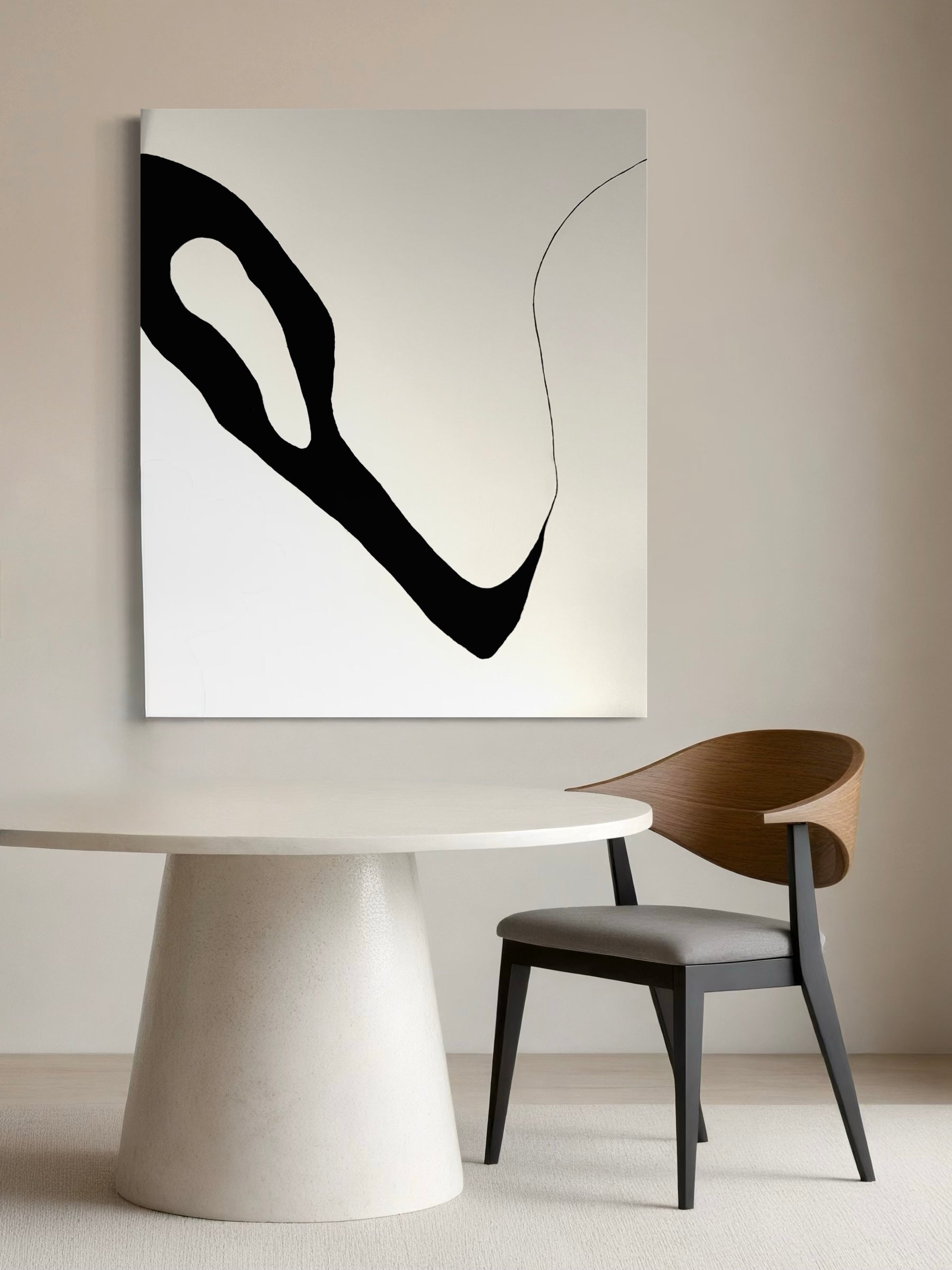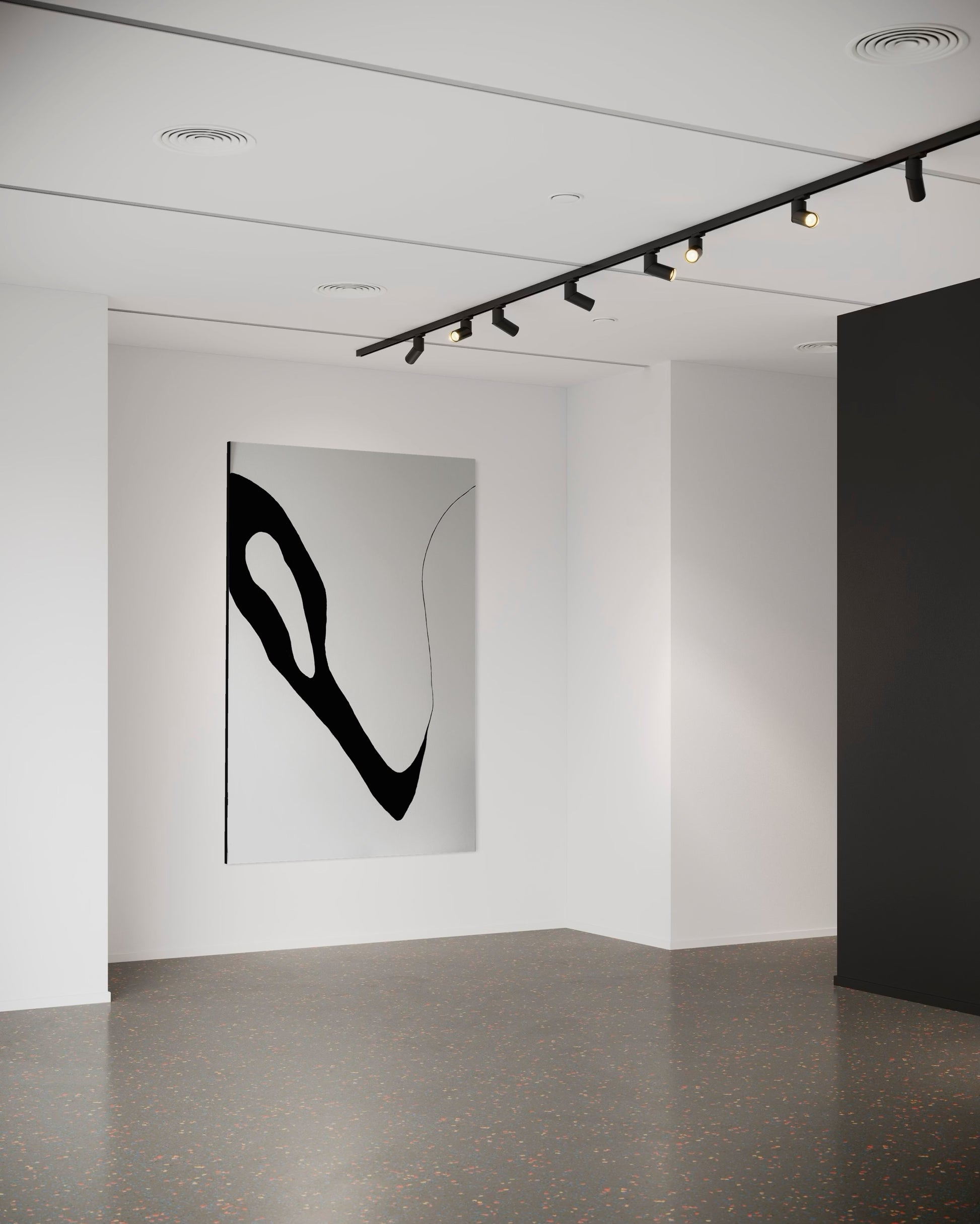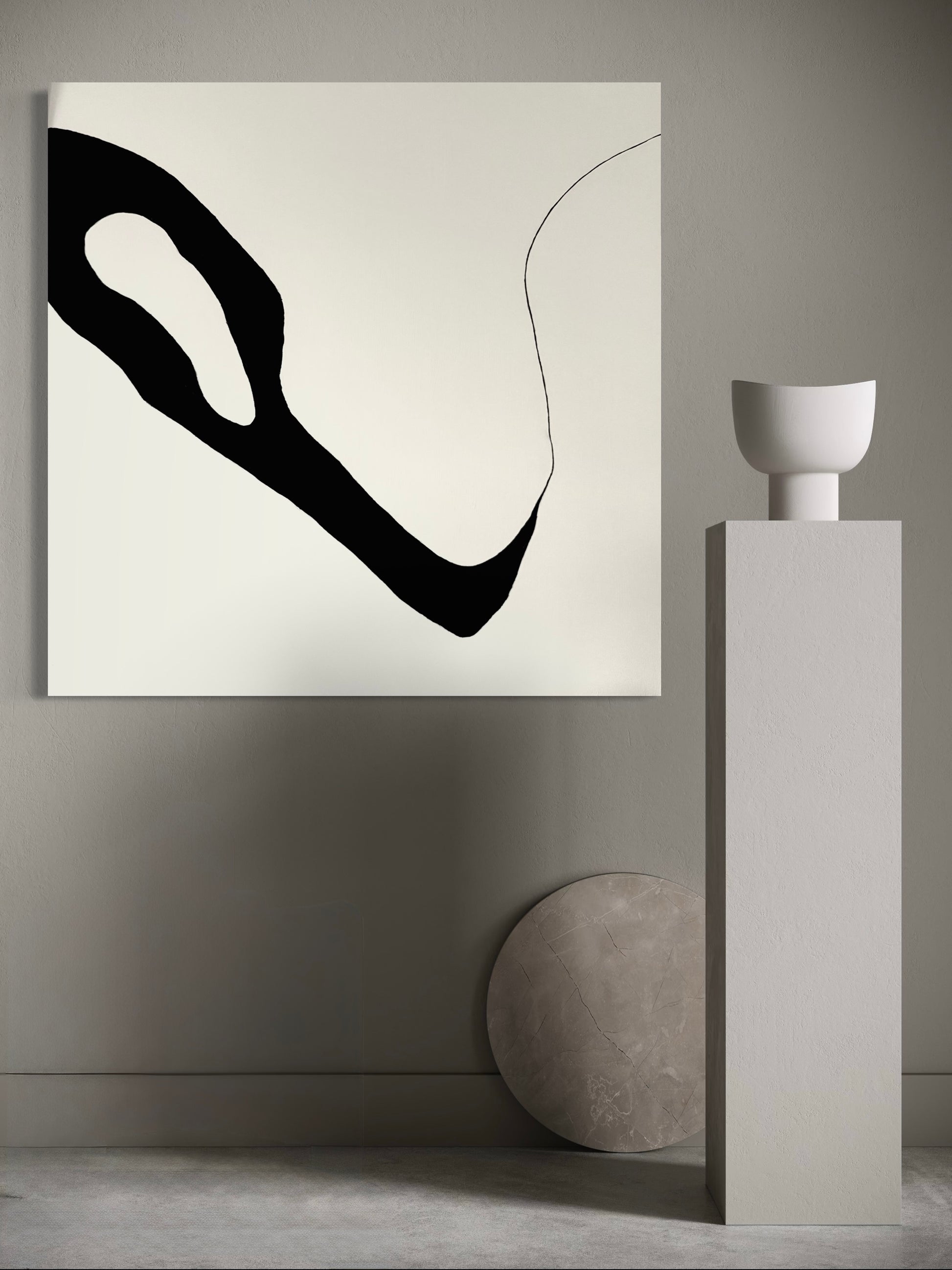 Akryl på vitmålad canvas med svart pigment som ger djup och kontrast.
